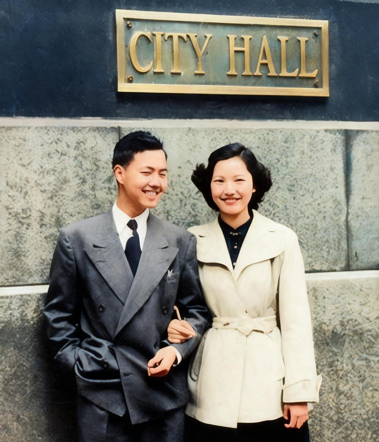1950年6月,秦惠䇹从圣玛丽学院毕业,随后他们在芝加哥市政府大楼举行了挺简单的婚礼。