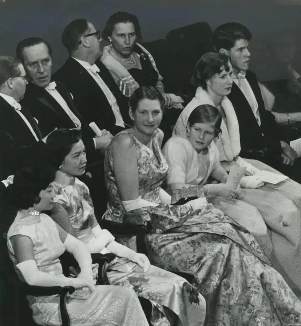 颁奖典礼在瑞典的斯德哥尔摩举行,秦惠䇹穿着一袭中式旗袍,优雅地站在丈夫身旁,显得格外迷人。