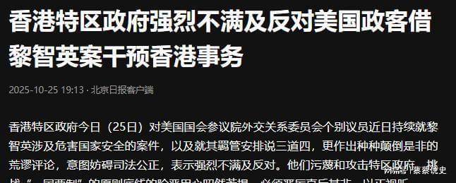• 香港特区政府强烈不满及反对美国政客借黎智英案干预香港事务——北京日报