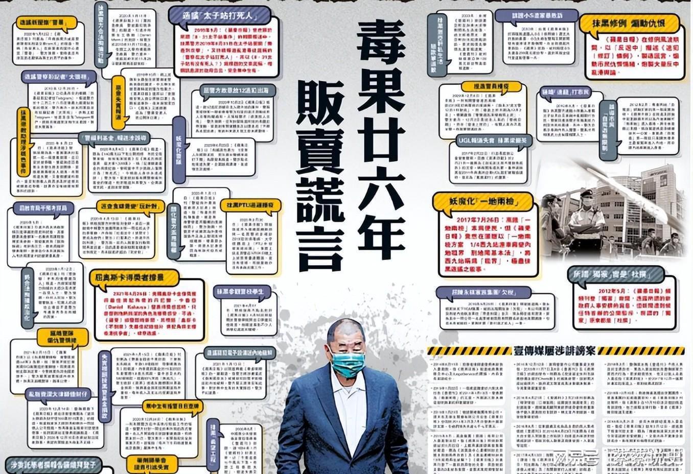 西九龙裁判法院内,三名国安法指定法官正主持这场没有陪审团的特殊审判。控方构建的「罪证链」直指黎智英两大核心罪状:其一,2012-2014年间向非法「占中」运动输送超4000万港元资金;其二,2019年修例风波期间通过《苹果日报》发布786篇煽动性文章,直接导致社会秩序崩溃。
