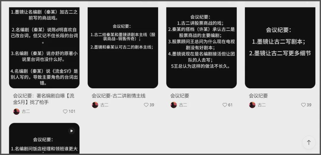 古二晒出多个《会议纪要》来证明自己为《繁花》剧本做出的贡献,其中不仅有他和王家卫、秦雯讨论剧本的音频,也有秦雯搭档许某当着股票顾问的面承认“股票商战”部分主要是古二写的,算是给古二的编剧身份又多了一重证明。