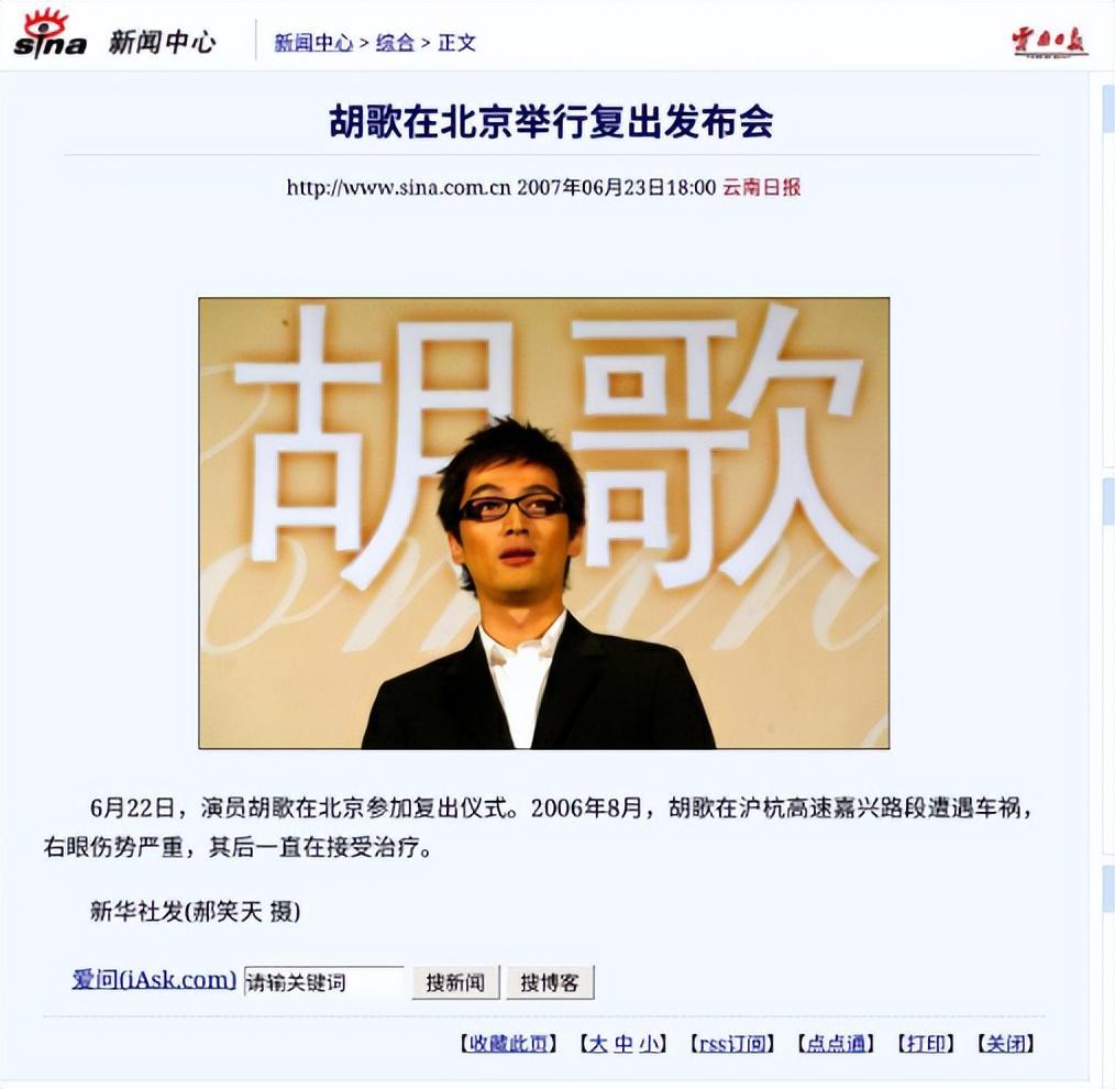 事后了解到,胡歌在前往拍戏的过程中遭遇严重车祸,历经数小时抢救,并且脖子和右眼缝合将近百针。