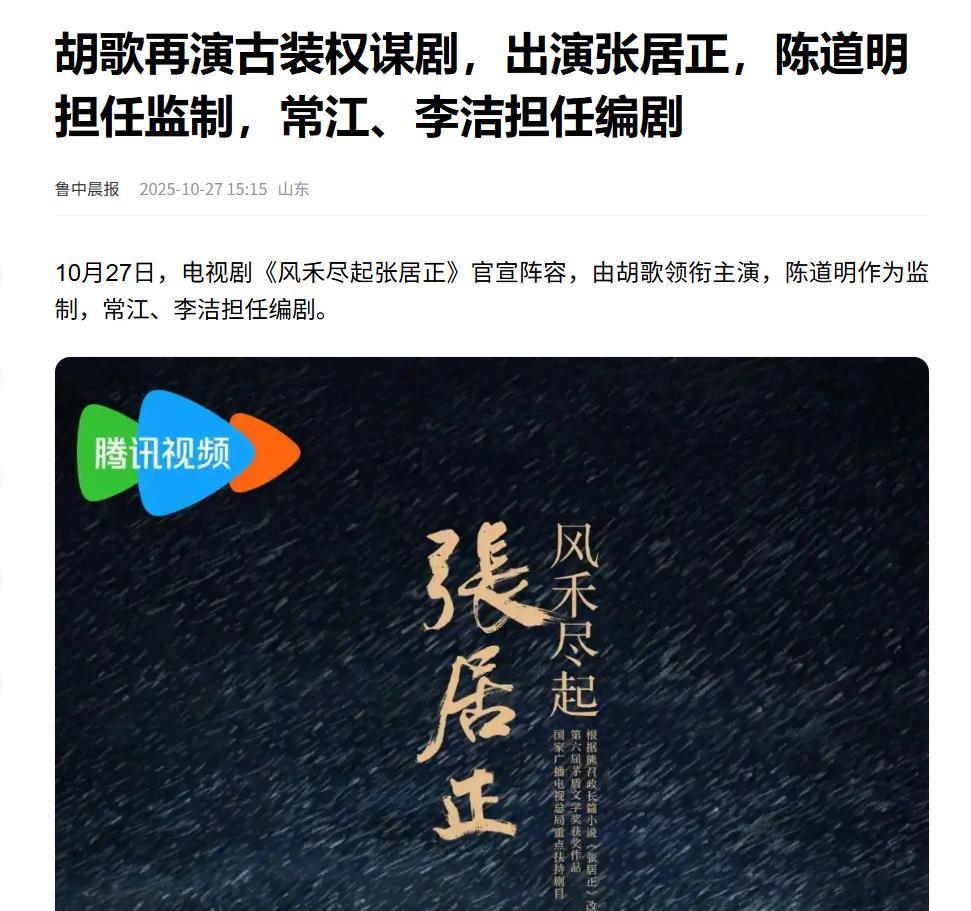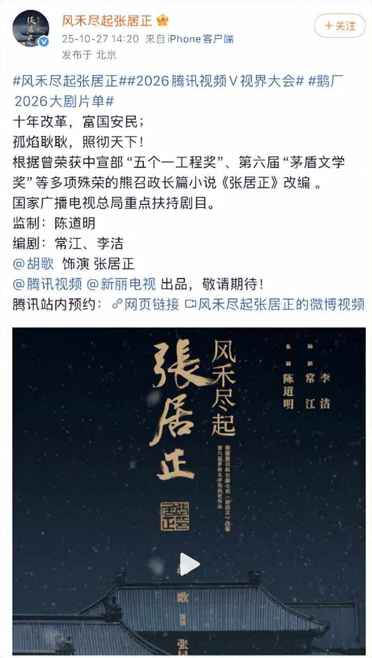 胡歌出演男一号张居正,并且由陈道明担任监制。