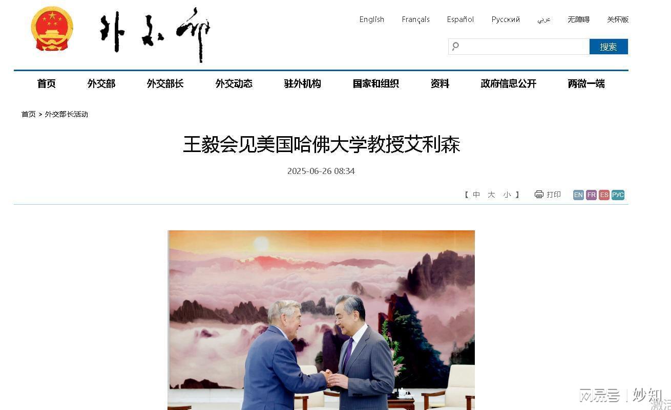 外交部2025.06.26《王毅会见美国哈佛大学教授艾利森》