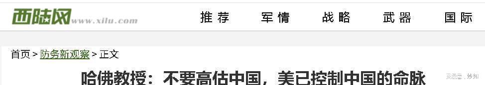 西陆网2023.09.08《哈佛教授:不要高估中国,美已控制中国的命脉》