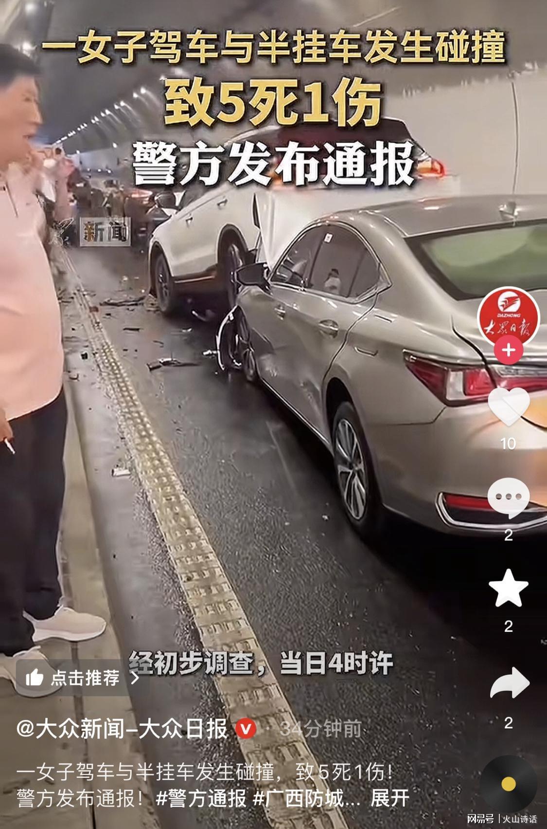 近日,广西防城港发生了一起令人痛心的交通事故,造成5人死亡、1人受伤,驾驶员也不幸遇难。目前,事发路段已恢复通行,相关部门正有序开展伤员救治、事故调查及善后处置工作。