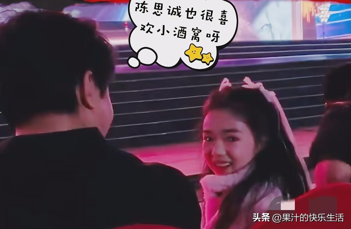 坐在小酒窝旁边的陈思诚,从背影中就能感受到他的开心与喜悦。他不停地对着小酒窝说着什么,小酒窝则一边认真聆听,一边频频点头,画面十分温馨。