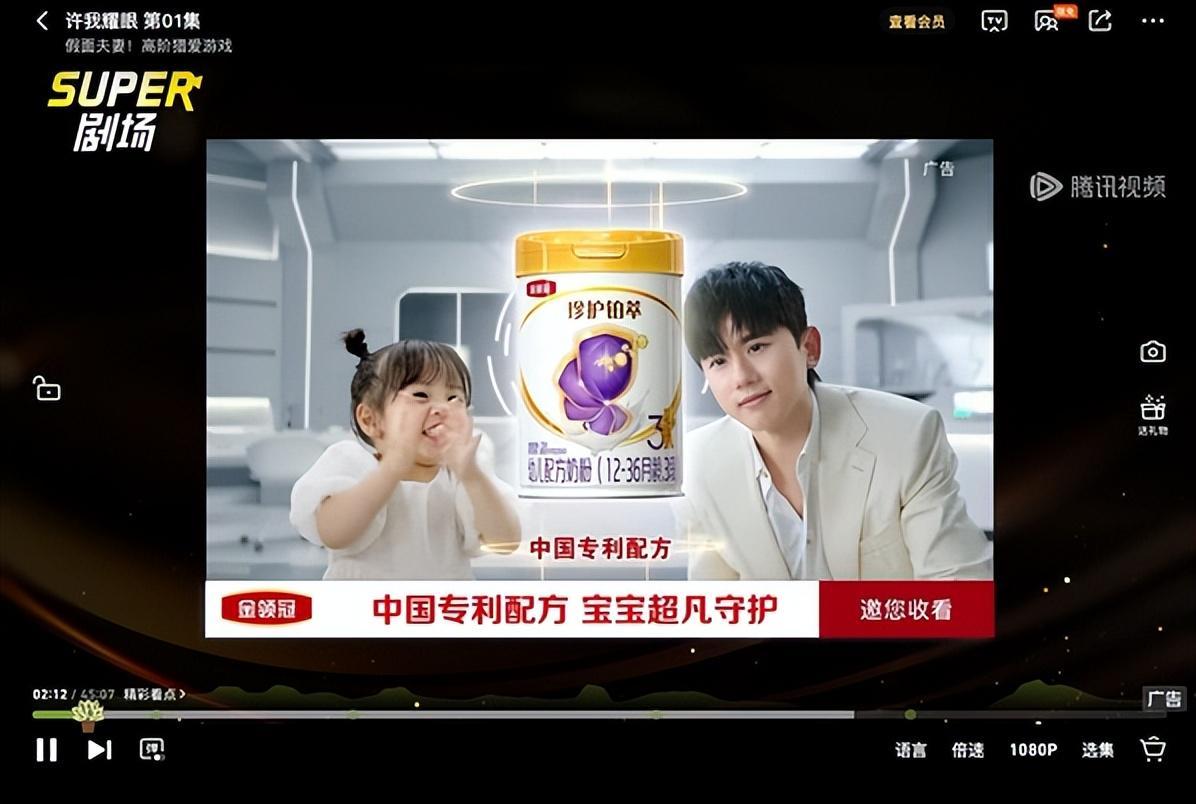 同理也出现在一些剧集冠名的逻辑上。虽然剧集冠名的曝光效果远不如综艺冠名,但也可以一种可以获得额外曝光、权益的广告形式,剧集冠名的品牌通常为平台品牌或者药业乳业这样的国民品牌,蒙牛集团旗下乳品、淘宝系品牌都是剧集冠名常客。