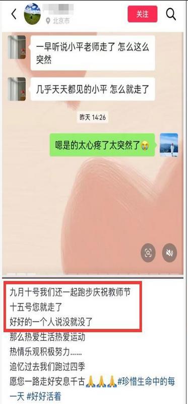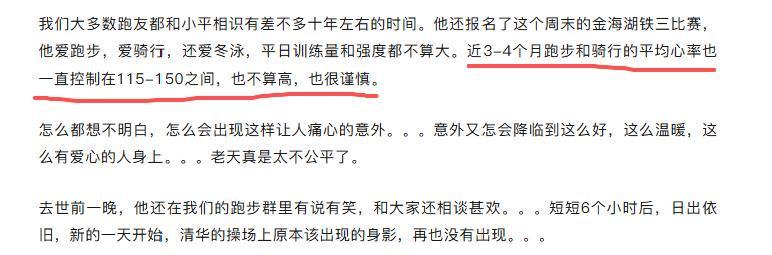 然而,就是这样一位自律的跑者,却在9月15日早上起床时感到不适,躺下后再也没有醒来。据亲友推测,他可能因急性心梗离世。