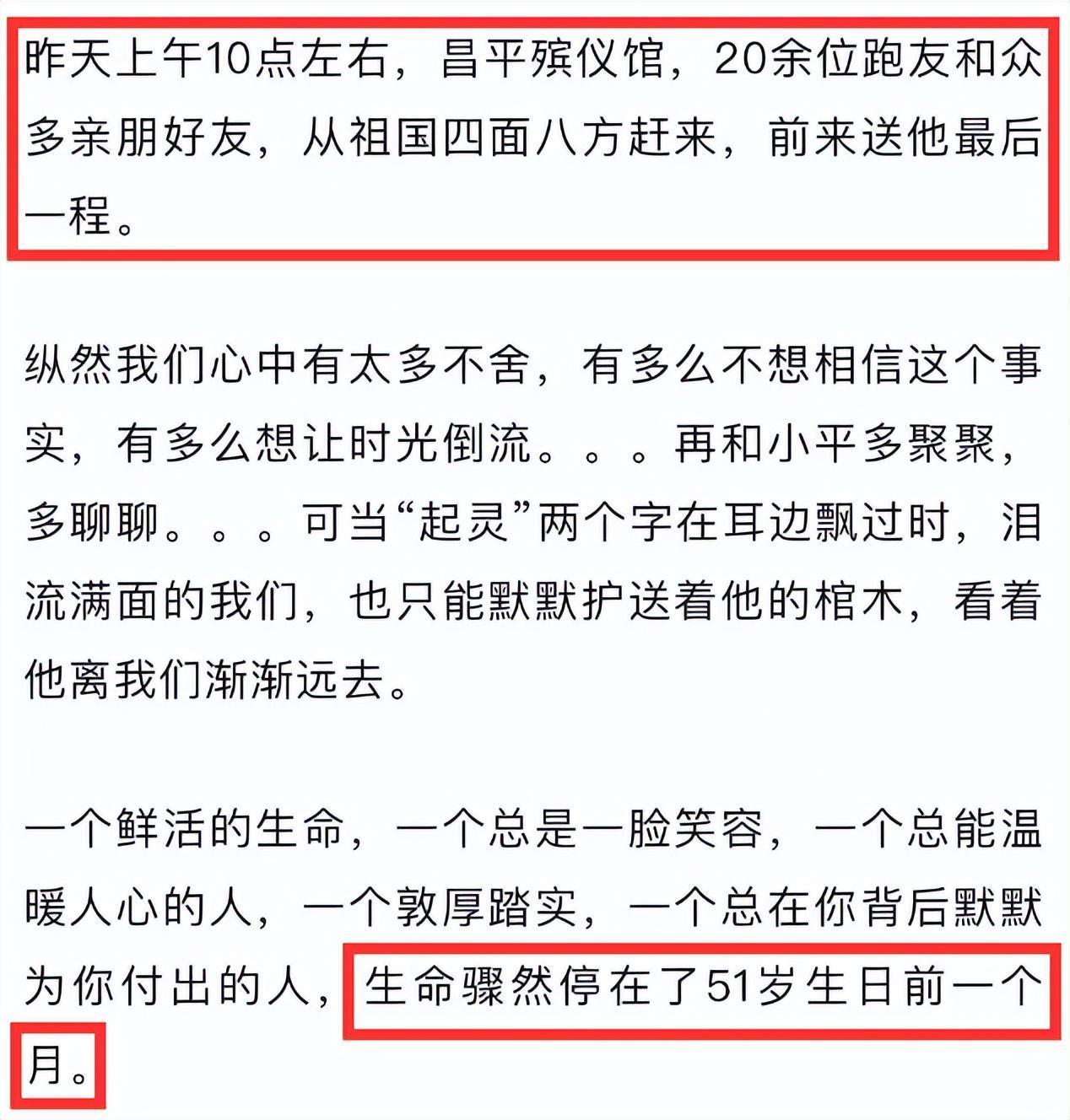 昌平殡仪馆的追悼会上,刘小平的儿子攥着皱巴巴的悼词,声音颤抖:‘爸,您的人生马拉松就是提前冲线了,家里的活儿我接过来,您放心。’台下二十多个从河北、山东甚至广东赶过来的跑友,无人能绷住眼泪。