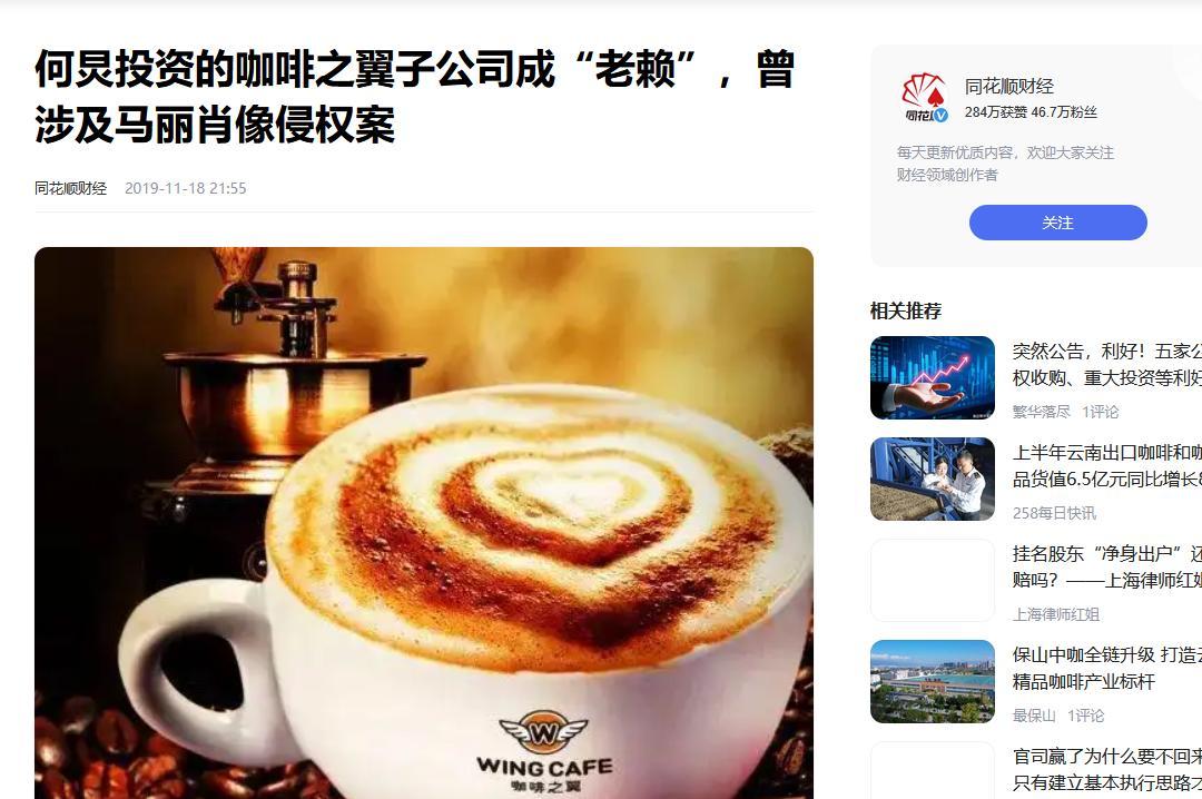 2019年,咖啡之翼不仅被迫退市,而且还成为了“失信被执行人”,尹峰当年风风火火的场面,也化为了泡影。