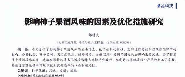 影响柿子果酒风味的因素及优化措施研究,邹栋良,食品安全导刊,2025-03-25