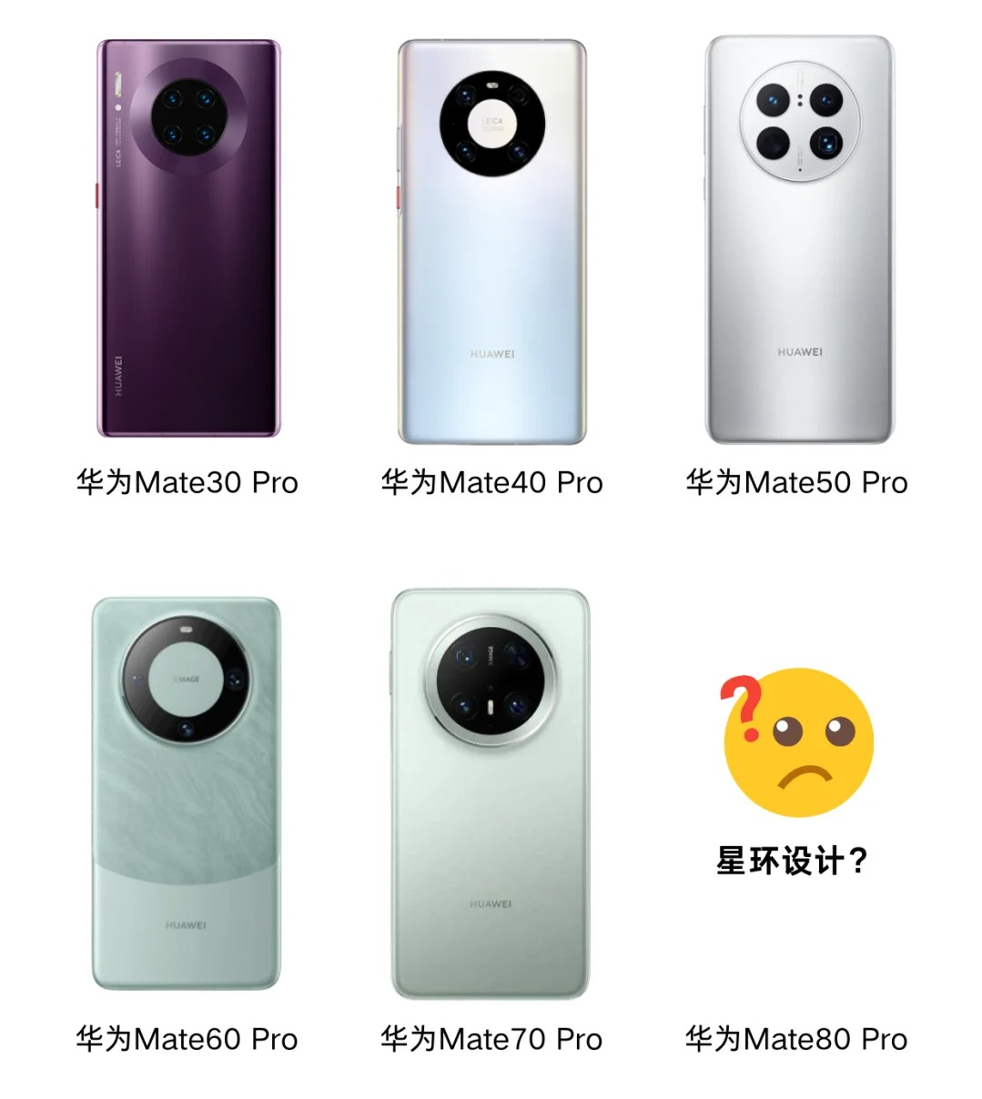 外观设计方面,华为Mate80系列必然延续一贯圆形影像模组设计,参考前几代设计逻辑,奇数版采用内部大圆影像模组,偶数版采用星环模组设计。华为Mate80系列可能和华为Mate40系列、华为Mate60系列设计类似,一圈星环设计提升辨识度,让人一眼认出华为Mate品牌调性。