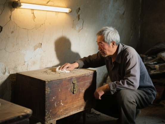 李建国慢慢走过去,蹲下身,用袖子擦了擦箱子上的灰。