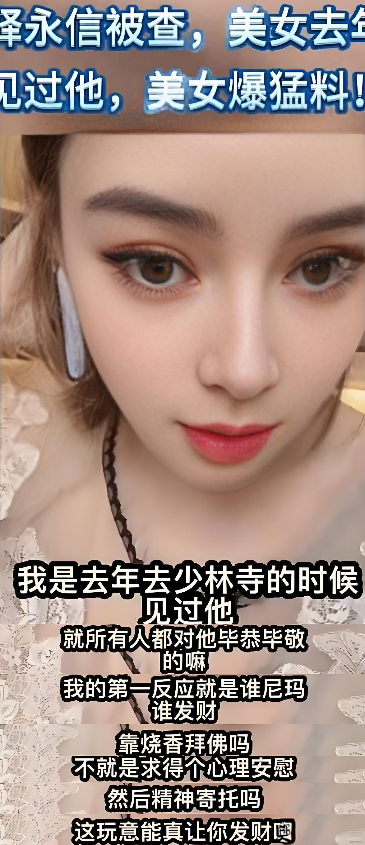 随着舆论的持续发酵,一位女网红的“自曝”更是将这场风波推上了新的热度。她用自己的亲身经历,揭开了一扇不为人知的门:原来,想要和释永信“结缘”,竟然需要花费一万块,而且还是三天两夜的行程,还得挤破头才能有机会。