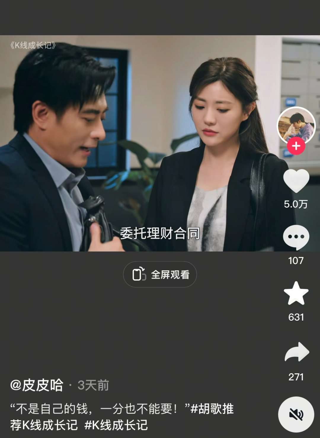 近期类似《K线成长记》的官方背书短剧并非个例。浙江省人民检察院指导的《暗礁》以保险诈骗案为原型,在头部短剧平台收藏量仅594;抖音反诈中心出品的《云端捕手》虽收获4.2万收藏,但评论数不足500。