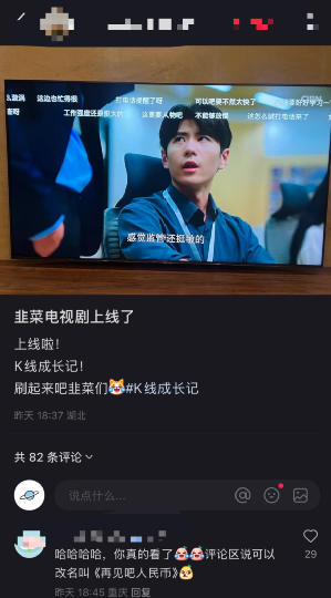 在某头部短剧平台,该剧上线四天后最高热度仅两千万,收藏总数不足四千,除首集外单集评论均未破千。对比该平台热播榜前一百短剧普遍五千万以上的热度,《K线成长记》显得“冷清”。