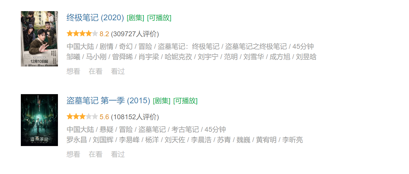 而《吴邪私家笔记》更像是一个快餐式的作品,它将我们看到过的《盗墓笔记》主体内容重新复刻了一遍,算是一部利用IP情怀取巧的剧集。