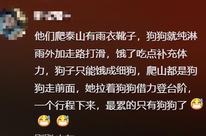 登顶之后夫妻在社交账号上用芬迪的口吻发了一条视频:“终于征服泰山啦!”但是却只字未提芬迪此时的状况,泰山深夜的山顶只有12摄氏度,夫妻两人在休息室里吃着热泡面,而芬迪被拴在门外的柱子旁依旧一直淋在雨里......