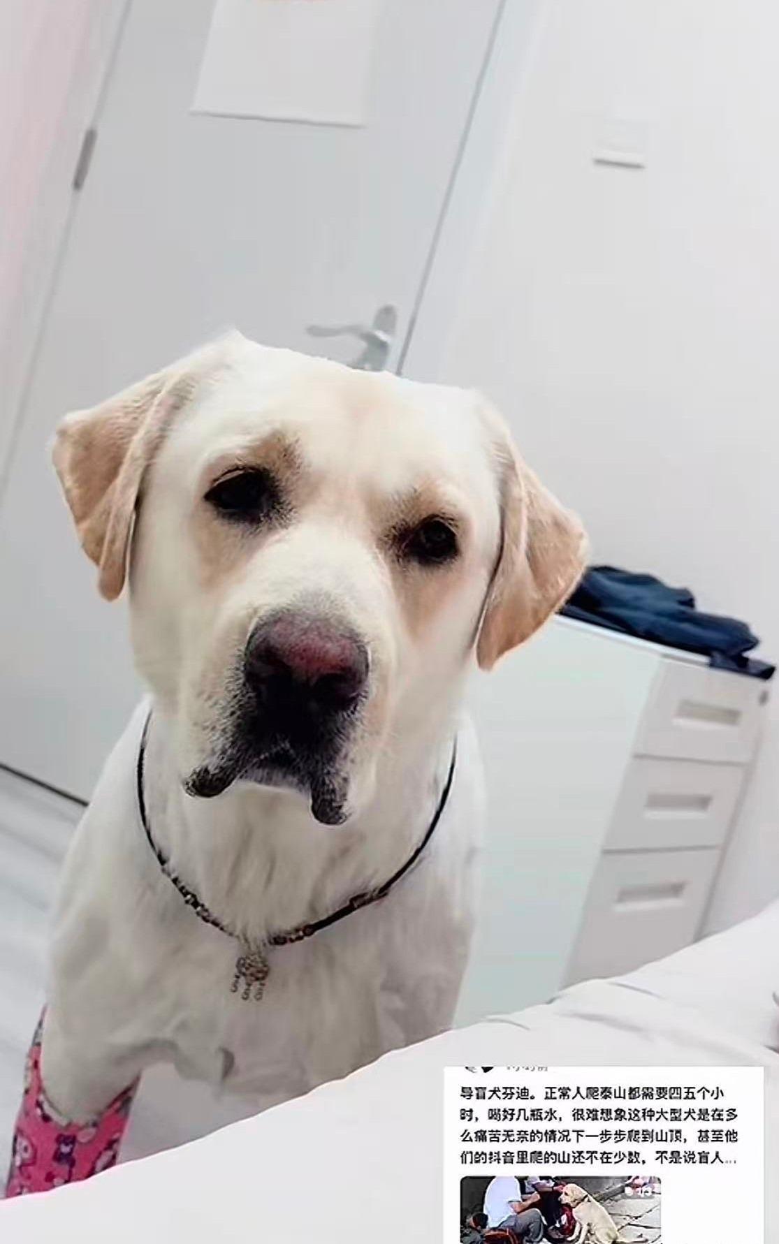 可现实中却仍然有人忽视了这一点,前两天一则“导盲犬芬迪爬泰山”的视频引发广泛争议,雨中一对男女带着这只黄色的拉布拉多艰难登阶,他们自己身穿雨衣,却未给狗狗任何防护,休息时芬迪伸头凑近水杯,但是却被主人无情地推开......