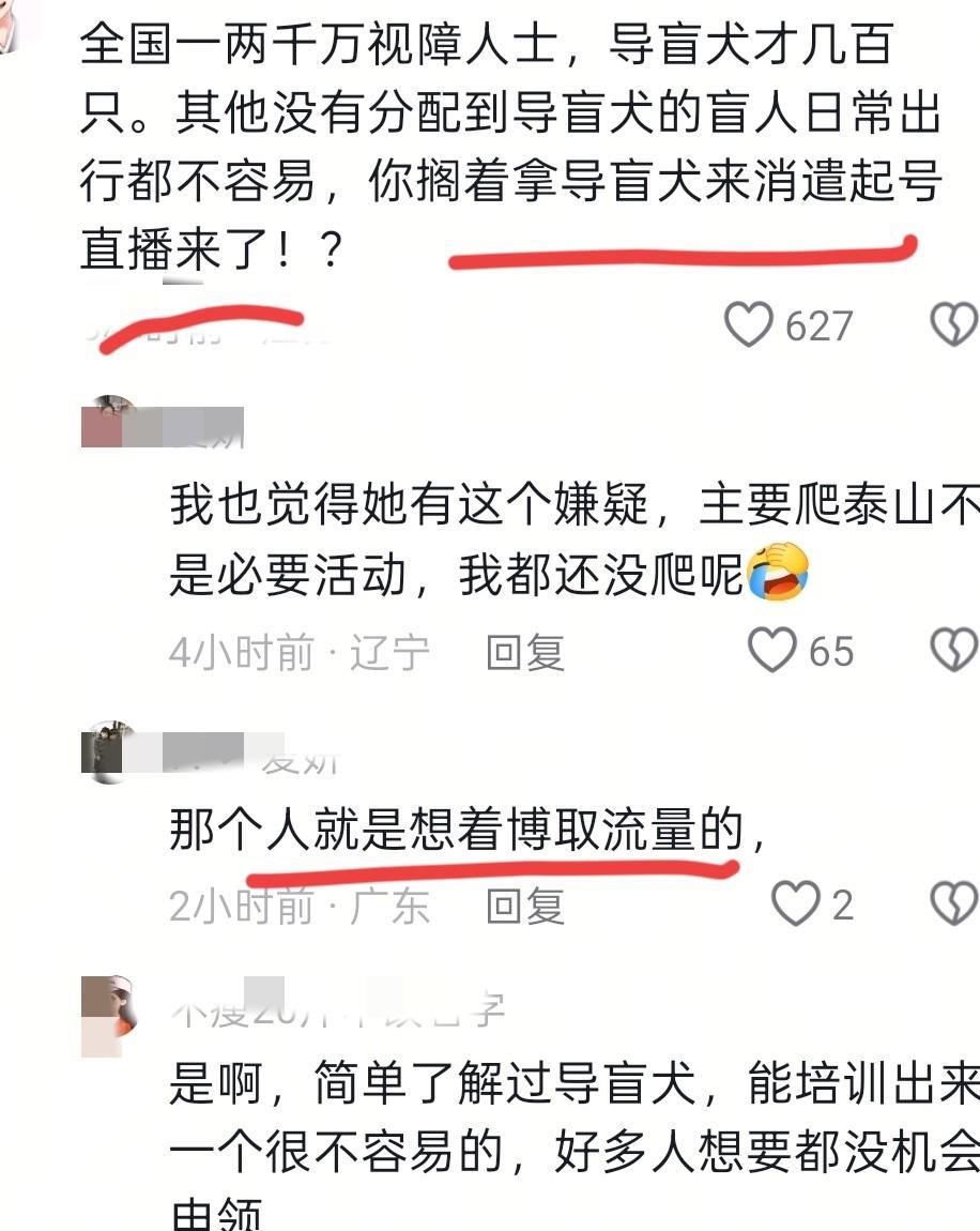 更加可恶的还是在登泰山之前,她曾特意带芬迪去长城做“强度测试”,坚持从北八楼爬到十二楼,就为了看它“能不能扛住”,这种将导盲犬当作“登山工具”和“流量密码”的行为,直接彻底激怒了广大的网友们。