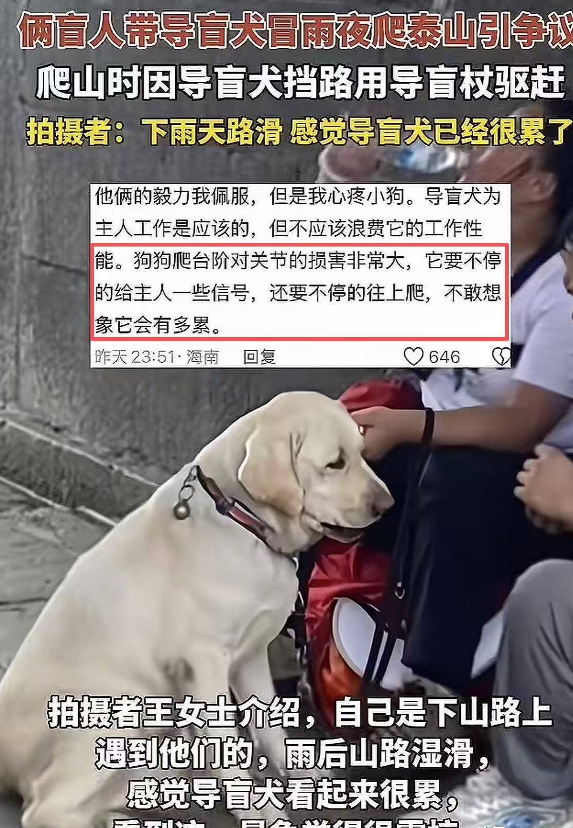 2.杭州日报:盲人带导盲犬雨夜爬泰山引争议,导盲犬大连基地回应:暂停导盲犬使用,将派专人专车接回