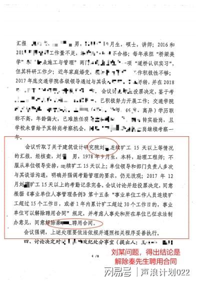 2018年7月26日,校人事处杨某珂通过短信通知秦先生“离职公文已出”。当秦先生回应“未提离职”并质疑“受校安排任职企业有协议”时,对方仅以“连续两年考核不合格”搪塞。8月1日,秦先生签收《关于辞退秦先生同志的决定》后立即提交申诉材料,却始终未获回应。