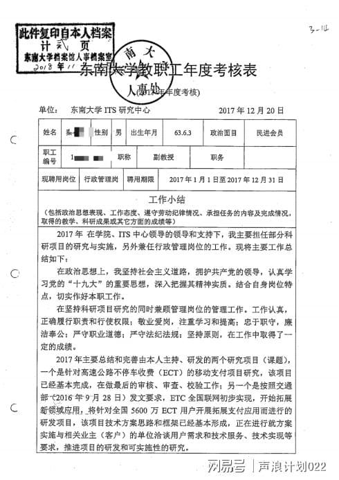 2003年,受校委派兼任校设企业江苏东大智能系统科技有限公司总经理期间,秦先生带领公司成长为智能交通领域骨干企业。2010年企业改制后,他立即申请返校任教,2011年调动申请获批准。然而交通学院虽承诺安排岗位,却直至2018年仍未落实,导致其长期处于“未聘用”状态。2007-2015年间,其月实发工资仅1575元至2832元,远低于同级别副教授收入水平。