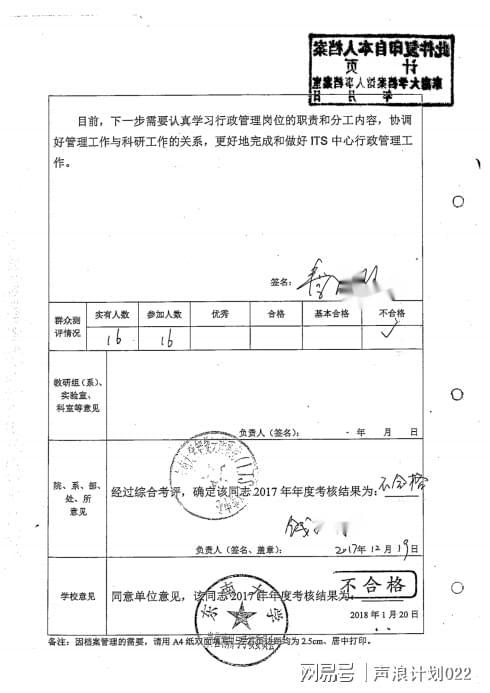 校方辞退依据的2018年7月校长办公会纪要存在多重漏洞:其一,所谓“2015年被举报吃空饷”与ITS中心《情况说明》矛盾,该说明证实秦先生“除出差均到岗”,人事处也签字确认“恢复未聘工资”;其二,“2016-2017年考核不合格”缺乏依据,2016年学校未安排工作导致其领“未聘用工资”,2017年考核表“群众测评”为“基本合格”却被篡改为“不合格”,且表格打印日期晚于院部意见日期。