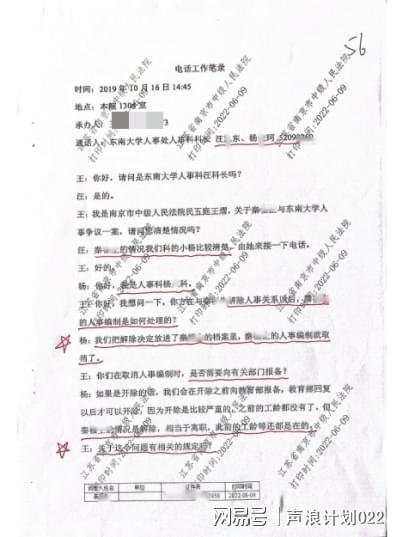 2019年10月16日,南京中院与东南大学人事处杨某珂的《电话工作笔录》显示,其声称“把解除决定放进档案,编制就取消了”“学校人员离职校内自主管理”。但法院已认定“辞退无依据”,依《事业单位人事管理条例》,仅通过“存档”跳过法定程序取消编制属违法,且该“解除决定”已依法无效。此外,学校未履行《劳动合同法》第50条规定的档案与社保转移义务,导致秦先生2023年6月达退休年龄时相关手续被搁置6年。