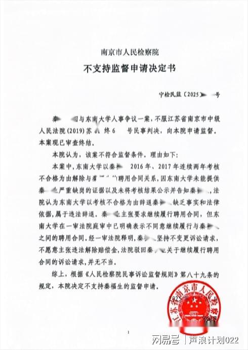 2020年11月,秦先生邮寄《询证函》要求提供“人事会议材料”,人事处拖延3年未回复;2022年6月调取案卷时发现校方未提交该关键证据;2023年5月,校方称“材料已交法院”,法院却称未收到;2023年6月申请再审,法官因“顾虑校方不执行”维持原判;2025年4月南京检察院出具《不支持监督申请决定书》,6月省最高检复查终结,司法救济渠道完全关闭。