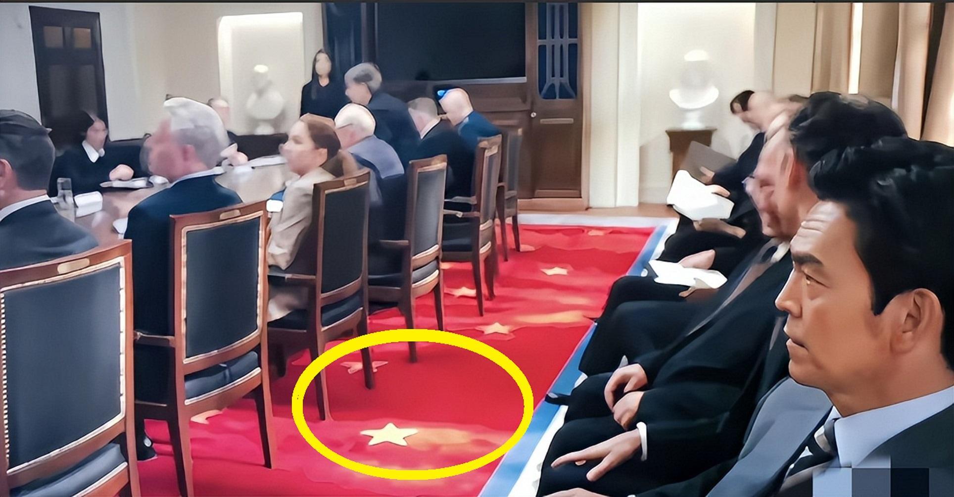 再往后看,更多可疑的细节被曝光。比如剧中那些反派,几乎都说着蹩脚的中文,被踩在脚下的红色地毯,偏偏印有五角星的标志。红色地毯虽常见,但剧组偏偏选择这种印有黄色五角星的造型,很难让人相信这是一个巧合。