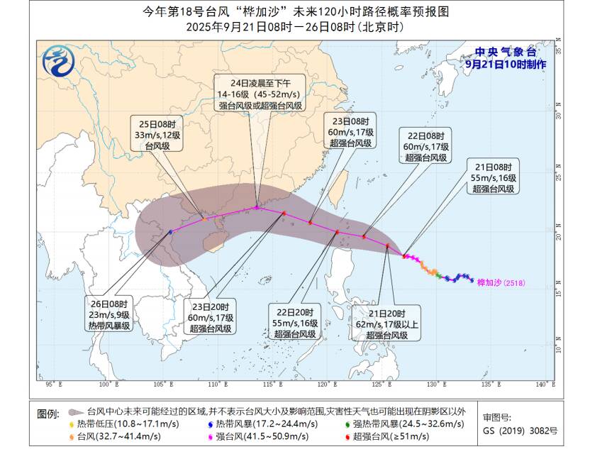 齐鲁网·闪电新闻9月21日讯 近日,山东省气象局于9月21日11时00分发布了重要天气预报,指出今年第18号台风‘桦加沙’(强台风级)正对我国沿海地区构成威胁。
