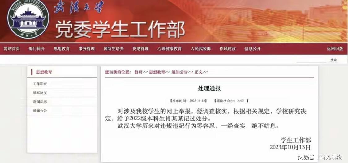 武汉大学首先宣布撤销对涉事学生肖某瑫的记过处分,依据是司法终审判决驳回了杨某媛的全部性骚扰指控。校方强调,经过91份材料复核、21人次访谈及实地验证,认定原处分决定存在不当。