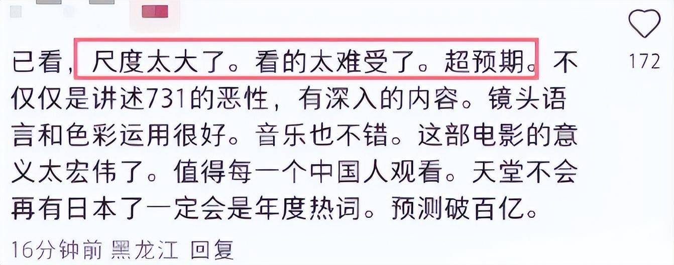 从这里就看得出来,《731》这部电影深受广大市民的喜爱。