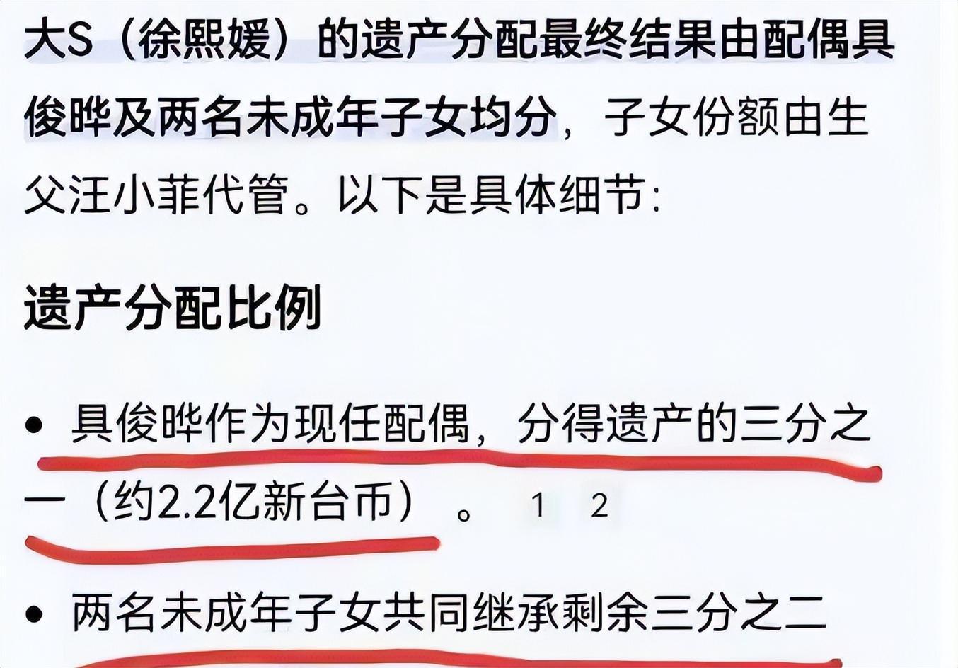 具俊晔曾公开表示,将负责照顾大S的两个孩子,确保他们不会落入“坏人”之手,并承诺将大部分遗产交给S妈黄春梅管理。然而,随着时间的推移,这些承诺均未得到兑现,其形象在公众眼中大打折扣。