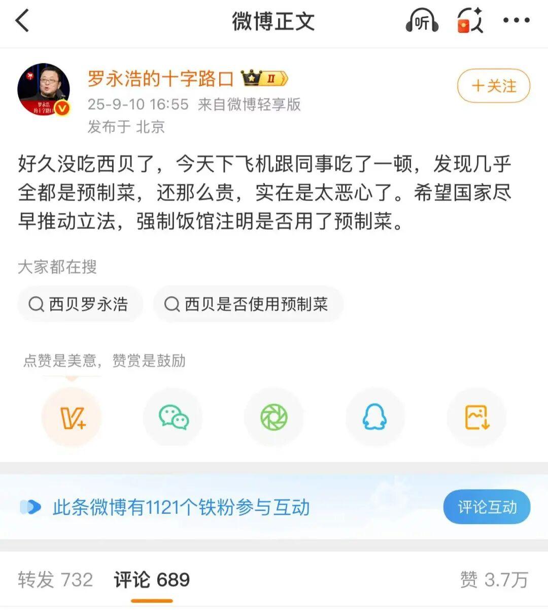 回顾这场风波,罗永浩的一条看似随意的微博,实则暗藏玄机。它如同蝴蝶的翅膀,轻轻一扇,便可能引发一场舆论风暴;又或是一个精心布局的陷阱,让西贝无论承认还是否认预制菜的存在,都难以逃脱被舆论包围的命运。