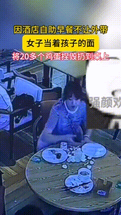 然而,当服务员礼貌提醒她不能将早餐打包带走时,这位母亲突然冷笑一声,做出了令人震惊的举动——她开始一个接一个地捏碎盘中的白煮蛋。三分钟内,二十多个鸡蛋全部被捏得稀烂,蛋清蛋黄顺着她的指缝滴落在桌面上,仿佛一场荒诞的“行为艺术”。