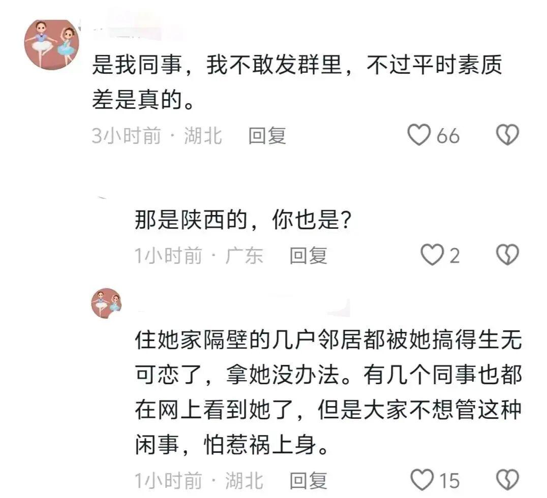 随着事件发酵,她的“人设”也一点点崩塌。同事表示“惊讶但不意外”,邻居称“一家子都不好惹”,老公更是“厉害得很”。合着这不是孤例,而是一整个家庭的“蛮横养成记”!
