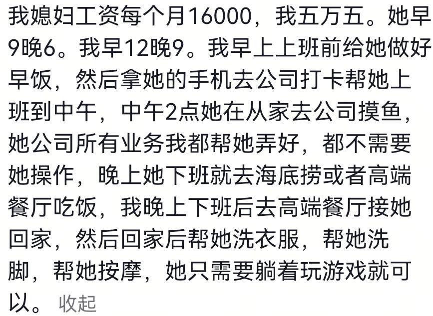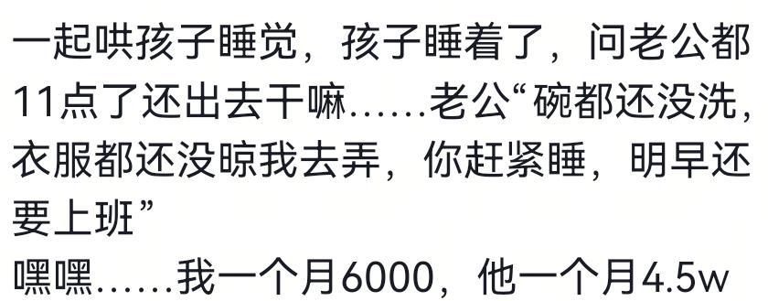 这场由日常小事引发的网络讨论,不仅展现了人们对美好婚姻的向往,更折射出当代社会对家庭责任的重新认知。正如有位网友所说:"没事,大多都是牛马",这种自嘲中带着对幸福的珍惜,让整个讨论充满了人间烟火气。