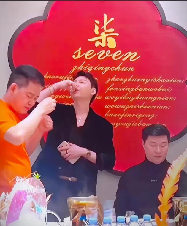 从曝光的照片中可以看到,生日会的仪式感十足。场地中央摆放着一个巧克力抹茶蛋糕,深棕色的奶油搭配翠绿色的点缀,让人光看图片就能感受到其绵密的口感。