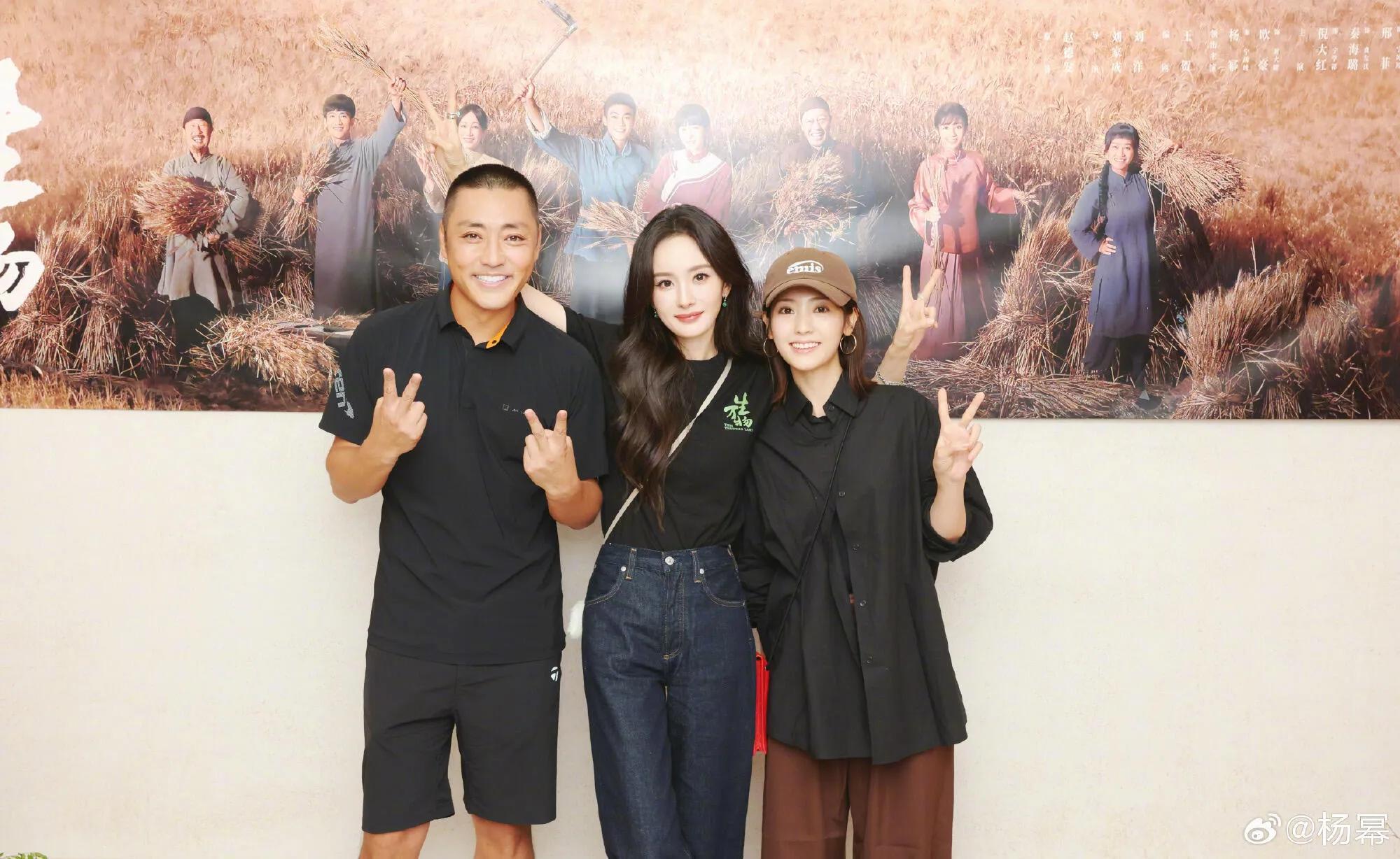 杨幂还与演员赵达、邢菲一起合影留念。邢菲个子小小的,和剧里的苏苏一样可爱,剧中的哥哥妹妹们也齐聚一堂,共同庆祝这部剧的成功。
