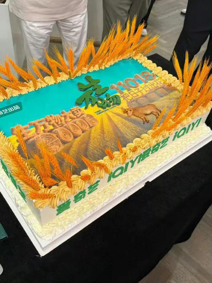 庆功宴上的庆功蛋糕也十分有特色,上面全是麦穗,土地里长满了麦子,小独角站在麦田里,眼前一派丰收的盛景。蛋糕上写着“把日子过出花”,这个蛋糕做得十分用心,寓意深远。