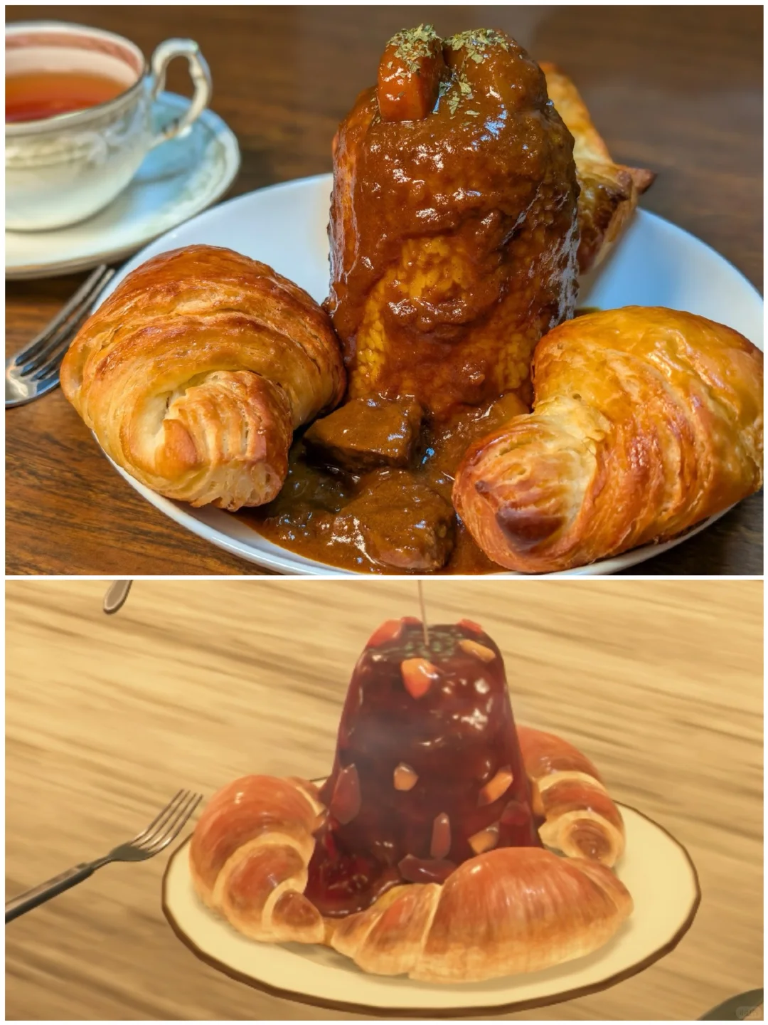 现实中还原游戏中的可颂咖喱饭,不禁让人好奇:为什么GF的创意总是离不开咖喱、面包,或是咖喱夹面包呢?