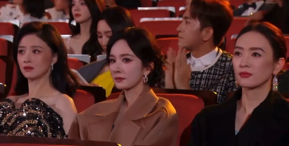到了内场之后,杨幂的待遇更是抢眼,不但坐在全场最中心的C位,左右两边还有蒋欣、童瑶两大视后级别的演员当陪衬。
