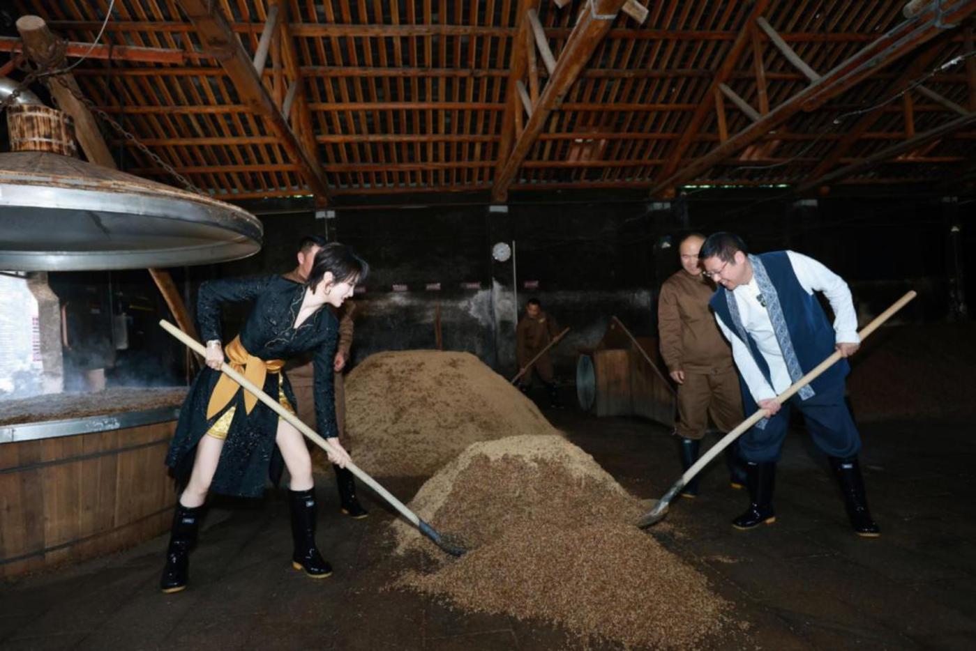 在珍酒李渡集团官微发布的视频中,姚安娜身着工装裤走进古法酿酒车间,从“两人对翻”到“低翻快拌”,完整体验了165道工序中的关键环节。她感叹:“历史不再是书本上的文字,而是触手可及的温度。”这场跨越时空的体验,恰是珍酒李渡董事长吴向东口中“连接传统与当代的新叙事”——既需要姚安娜身上打破边界的创新精神,也离不开其对酿酒工艺的敬畏之心。