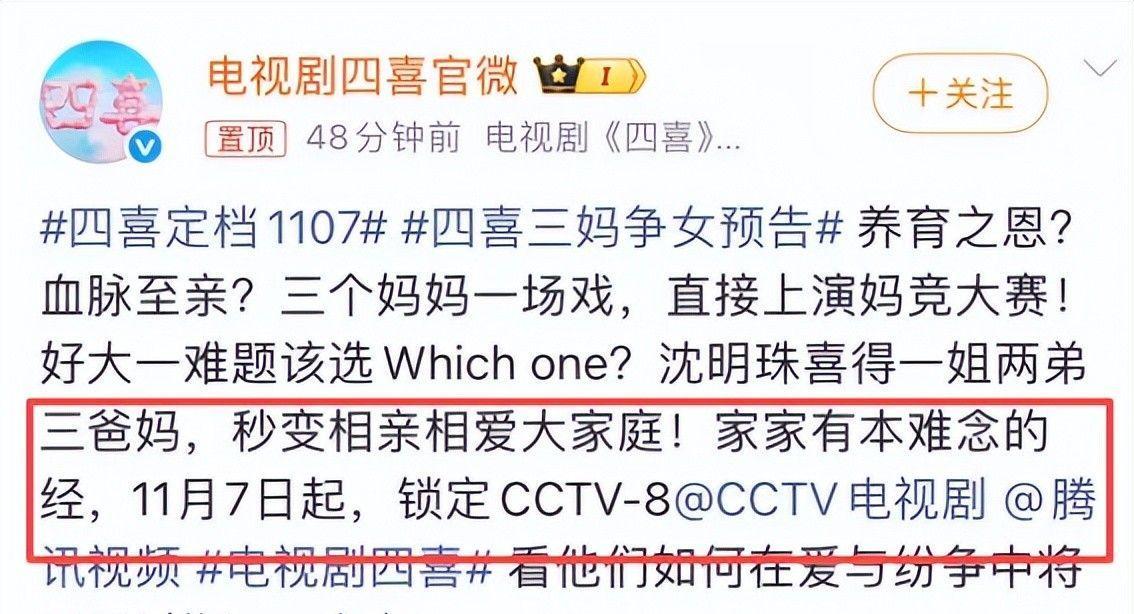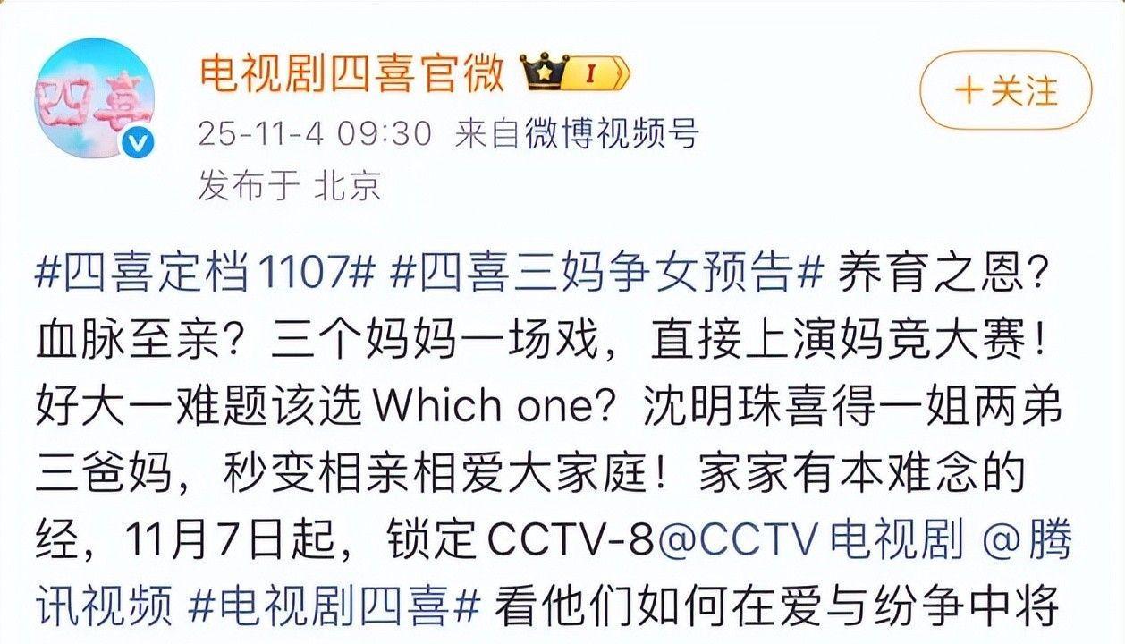 11月7日,30集家庭伦理大剧《四喜》将正式登陆央视八套黄金时段,未播先热,光是演员阵容就已引发全网热议——