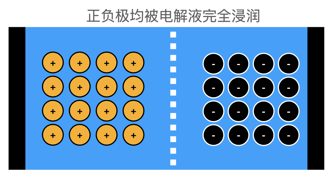 在液态电池里,正负两极都浸泡在液态的电解质中。在微观尺度下,我们会发现:液态电池的电极完全被电解液所浸润,彼此之间亲密无间,锂离子的通道畅通无阻。