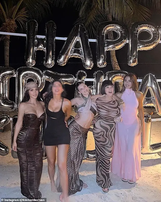 除了一向神龙见首不见尾的大姐考特尼之外,卡戴珊全家姐妹悉数到场,在巨型“Happy Birthday Kendall”银色气球前并肩摆拍。
