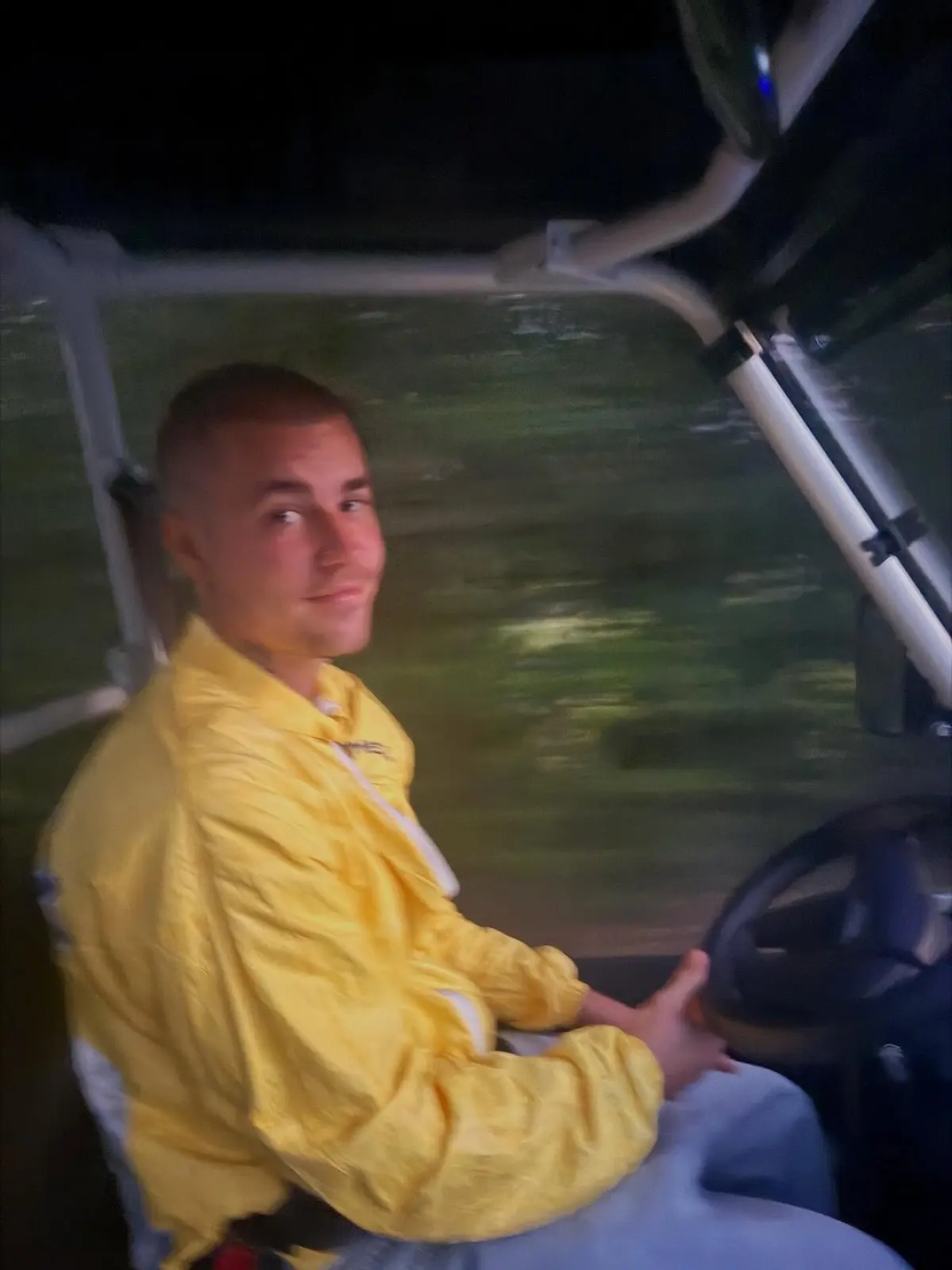 照片中他正驾驶着高尔夫球车在肯豆举办派对的私人岛屿上行驶。